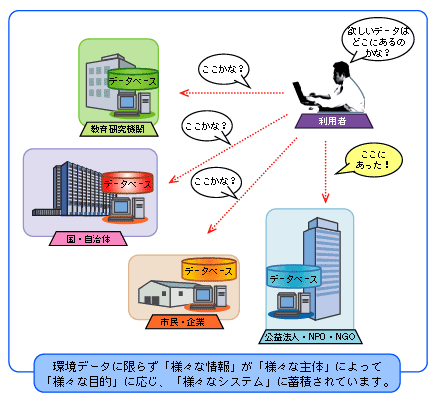 従来は、主体毎のシステムの相違がデータ流通の障壁となっていましたが、インターネットの登場によって、システム間の障壁がくずれ、ホームページのような情報を有機的に連携できる仕組みの提案によって、情報を容易に検索したり、閲覧することが可能な社会となりました。