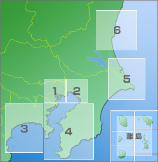 地図上の1〜6および離島の各エリアをクリックすると、そのエリアの詳細地図が表示され、観測地点の詳細情報がわかります。